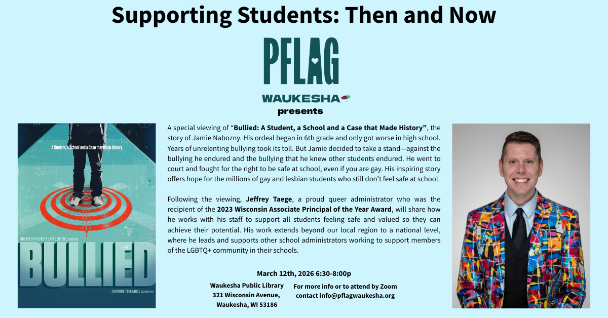 From June 2024 to December 2024, PFLAG Waukesha conducted a public survey to assess perceptions of LGBTQIA+ issues in Waukesha and to identify potential steps for improvement. Please click on the link to access the results.